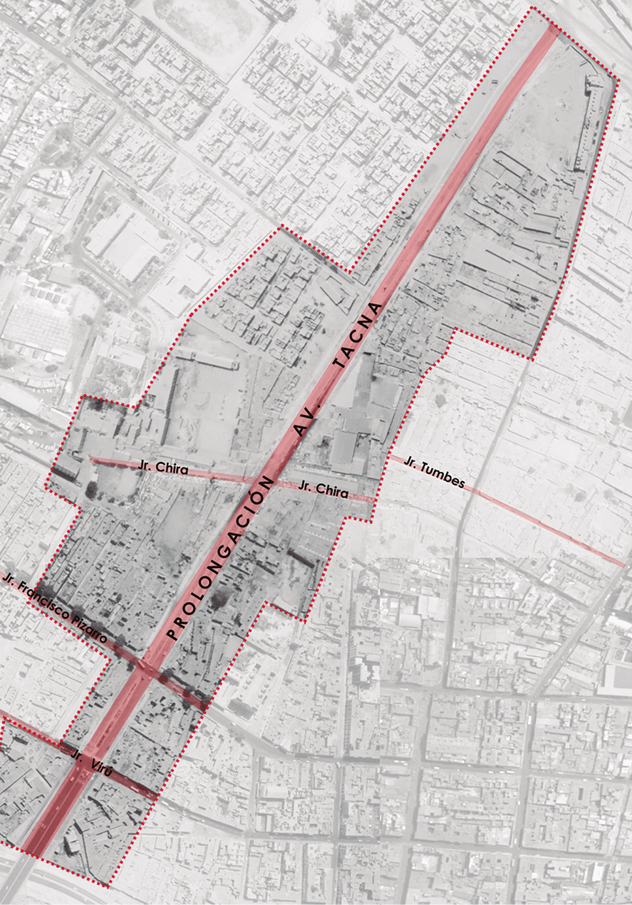 Fue durante el gobierno de José Bustamante y Rivero (1945-1948) que se promulgaron leyes de expropiación forzosa, con la finalidad de generar obras de utilidad pública. Asimismo, según Pino (2014), en esa época también se ejecutó la demolición de uno de los frentes de la Av. Tacna que albergaba dos edificaciones religiosas: la iglesia de Santa Rosa y la iglesia de las Nazarenas. Luego, en 1956, se llevó a cabo el reordenamiento de las barriadas instaladas en la zona, “la expansión de la Av. Tacna estaba rodeada por barrios marginales […]” (A. Krateil, comunicación personal, 8 de julio de 2021). Según Escalante y Montesinos (2005), estos barrios se instalaron precariamente en áreas de cultivo.