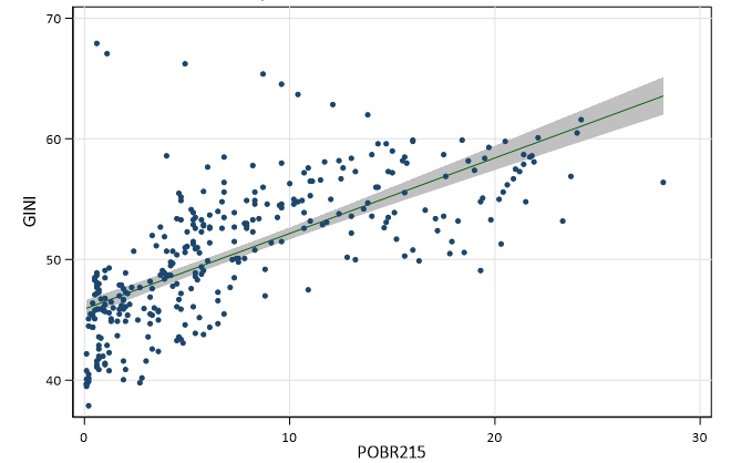2. Examinar el efecto de la pobreza sobre la desigualdad y profundizar sobre las formas en que las disparidades en la pobreza impactan la distribución del ingreso.