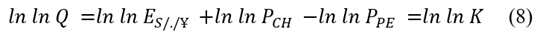 Equation (3) presents on its left, the value in Peruvian soles of a basket of goods consumed domestically, and on its right, the equivalent cost of that basket in China, expressed in PEN after conversion. In other terms, the right side illustrates the real purchasing power of the Peruvian currency in the Chinese market. Thus, PPP provides a theoretical explanation of exchange rate fluctuations between two nations as a function of relative price level changes.