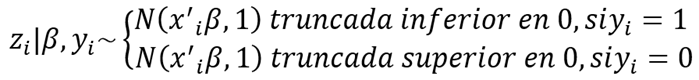 La ecuación matemática del modelo de regresión probit bajo la perspectiva bayesiano quedó expresada de la siguiente manera: