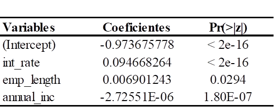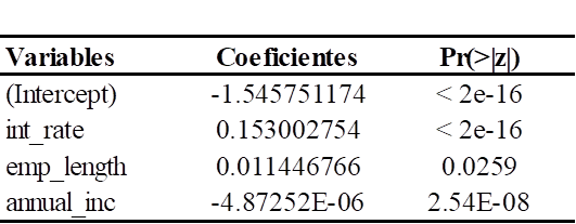 La estimación de los coeficientes para el modelo de regresión logit bajo el enfoque clásico se logra apreciar en la tabla 2.