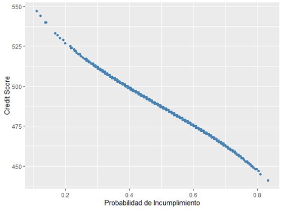 Relación entre la Probabilidad de Incumplimiento y el Credit Score